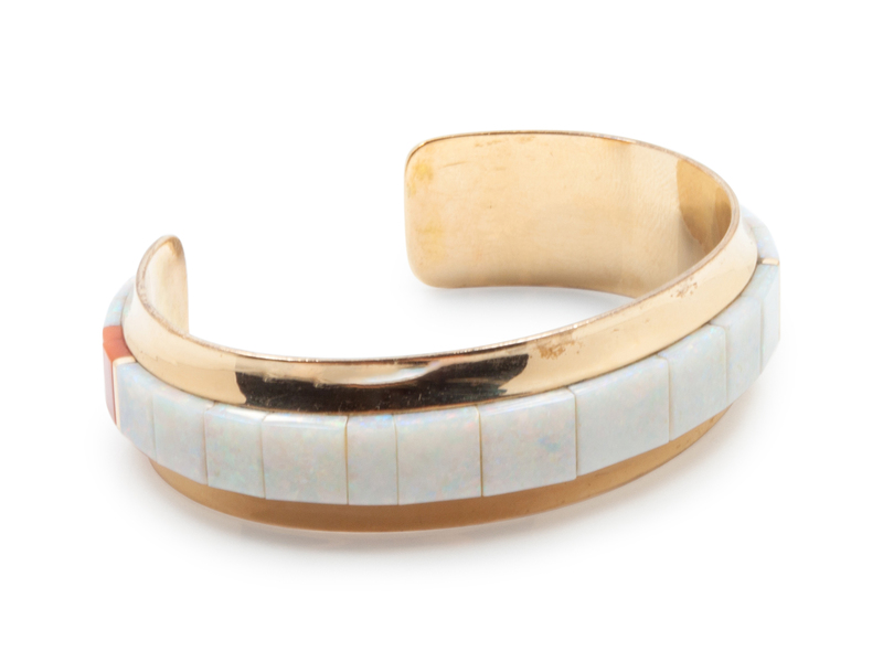 Yellow gold bracelet with shell inlay, signed Victor Beck