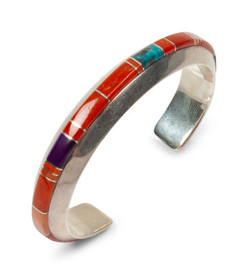 Sterling silver cuff bracelet with channel inlay; stamped with artist's hallmark and sterling