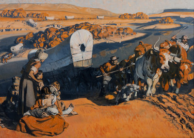 River Crossing, 1937, oil on canvas, signed Harold von Schmidt and dated (lower right)