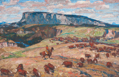 Cattle Herd and Cowboy, oil on canvas, signed Harvey Dunn (lower right)