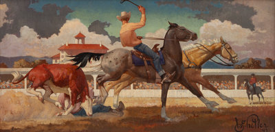 Rodeo at the Broadmoor, 1947, oil on board, signed L.G. Heller and dated (lower right)