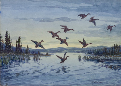 Taking Off, watercolor, signed H Kleiber (lower right)