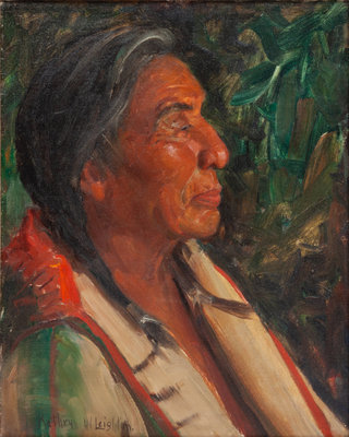 Chief Wildman, Stoney (Sioux) Indian, oil on canvas, signed Katherine W Leighton, (lower left)