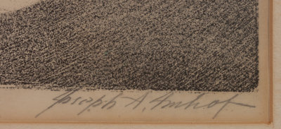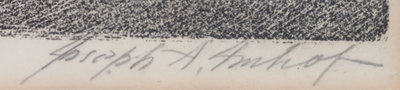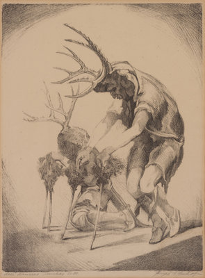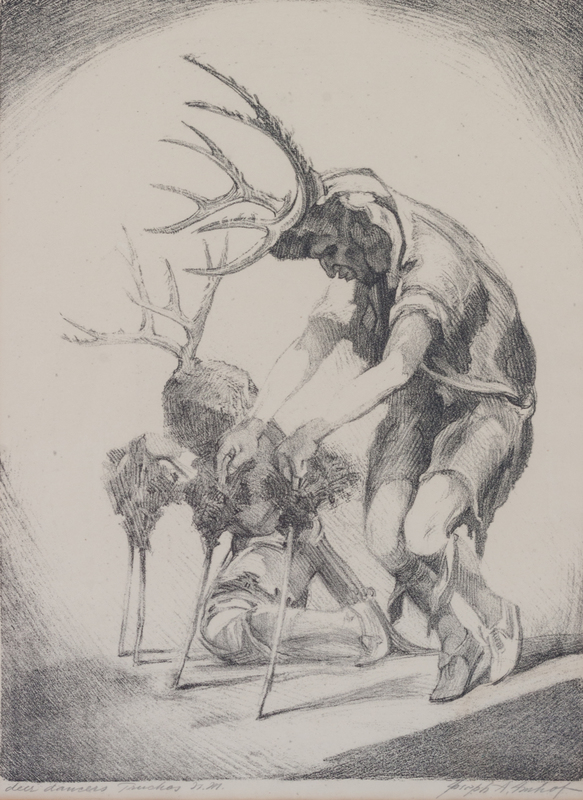 Deer Dancer, Truchas, New Mexico, charcoal on paper, signed Joseph A. Imhof (lower right)