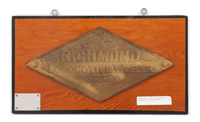 Two Painted Metal Richmond Locomotive Works Locomotive Badges for the MR & BT Railroad.