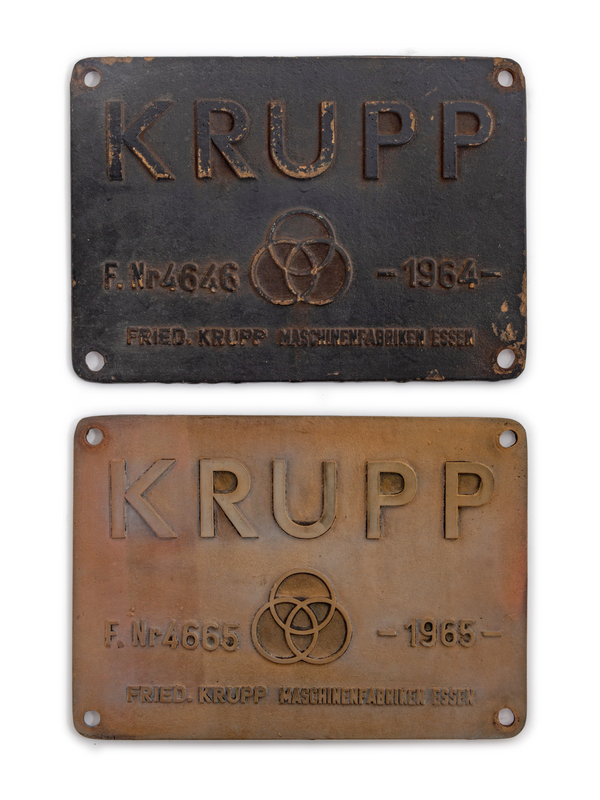 Two Metal Krupp Maschinenfabriken Locomotive Badges