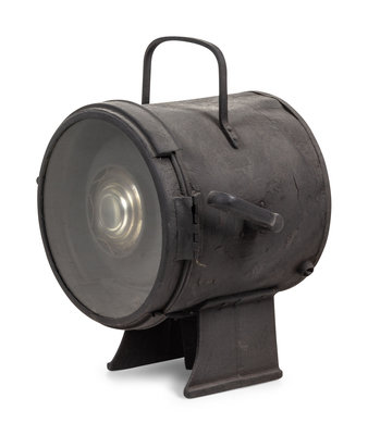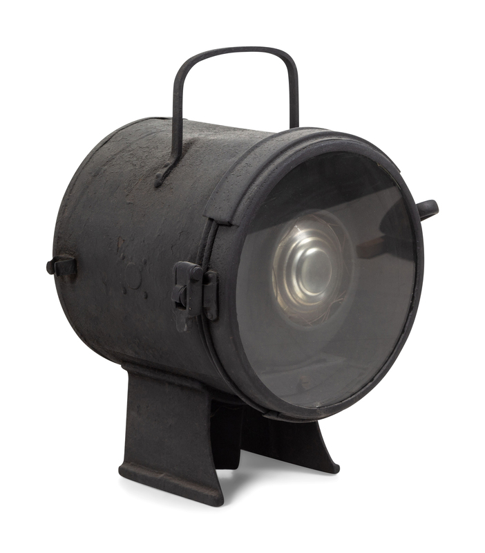comprising five bentwood mailbag crooks, a carved polychrome Great Northern Railway medallion, two metal badges, a search light and a Mars Signal Light control switch and two rail spikes.