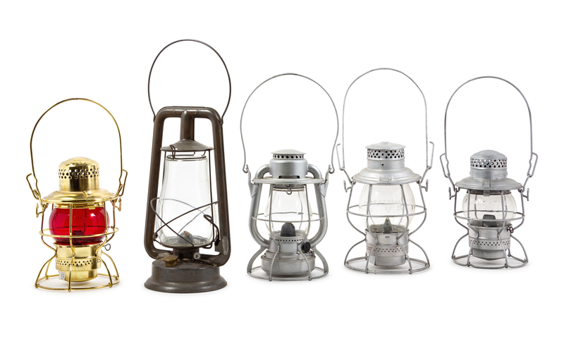 A Group of 5 Chromed Metal Railroad Signal Lanterns
