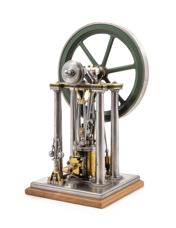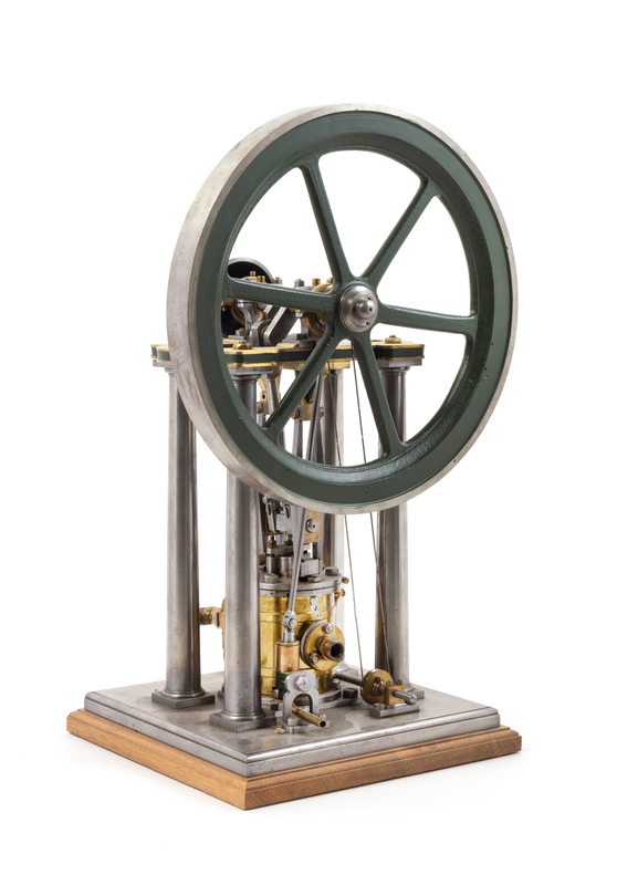 A Painted Metal Steam Engine and Flywheel Scale Model