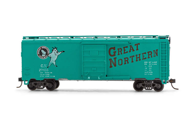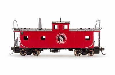 comprising a Tenshodo polychrome HO-Gauge 4-8-4 model #2552 locomotive and tender, a Japanese HO-Gauge 2-6-4 locomotive and tender, together with two polychrome Great Northern cabooses and a box car.