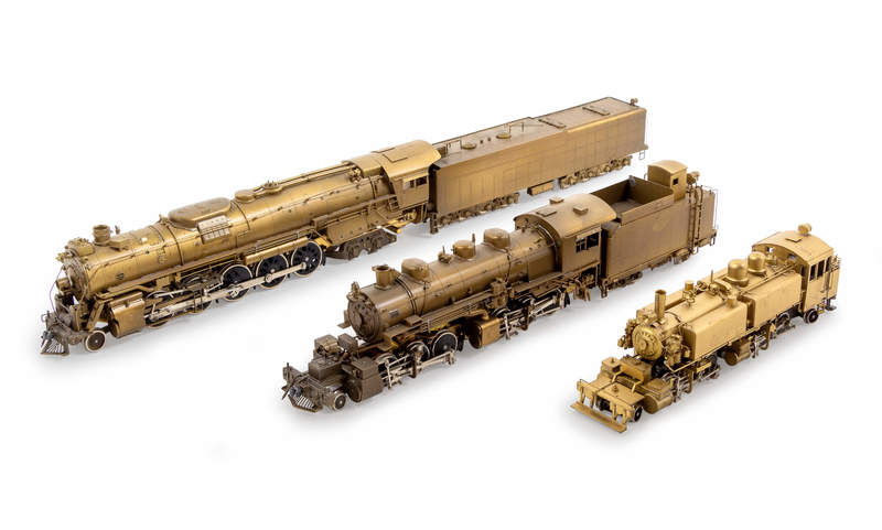 comprising a United Scale Models 2-10-4 locomotive and tender, a United Scale Models 2-6-6 locomotive and tender and a Toby 2-6-6-2 locomotive example.