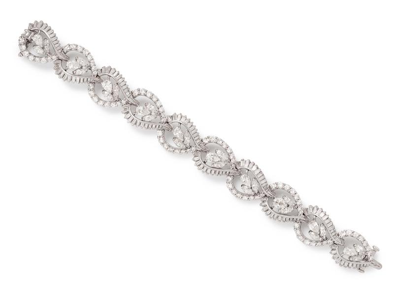 containing 10 pear shape brilliant cut diamonds weighing approximately 5.00 carats total, 20 marquise cut diamonds weighing approximately 4.00 carats total, 80 round brilliant cut diamonds weighing approximately 3.65 carats total and 103 baguette cut diamonds weighing approximately 4.15 carats total.