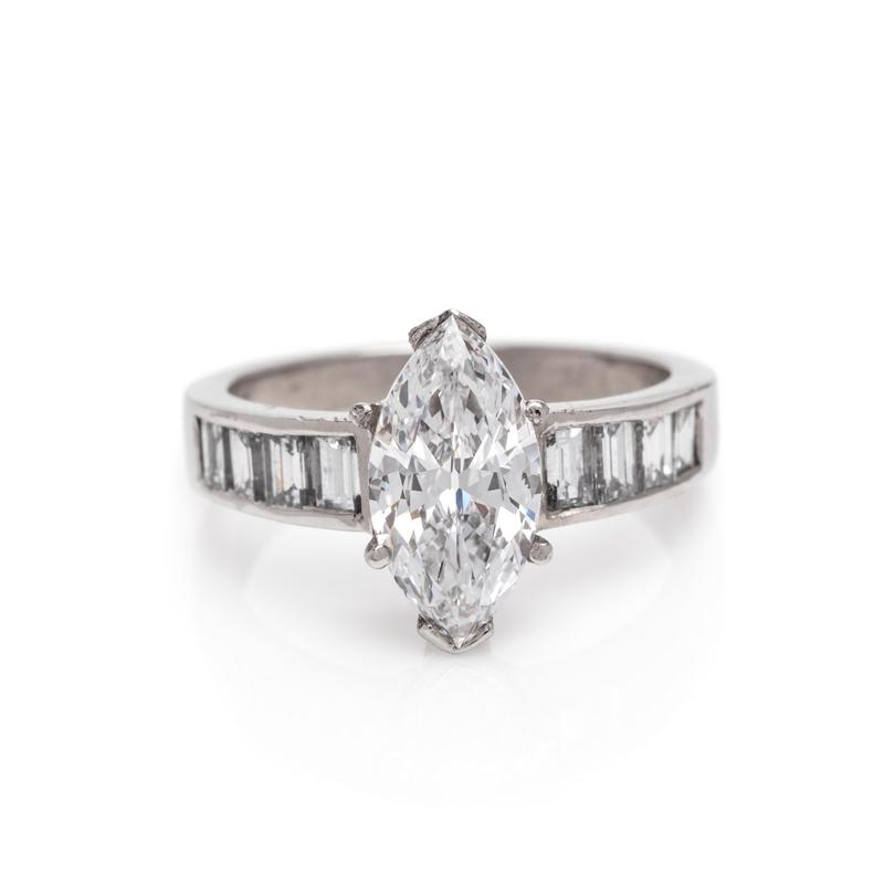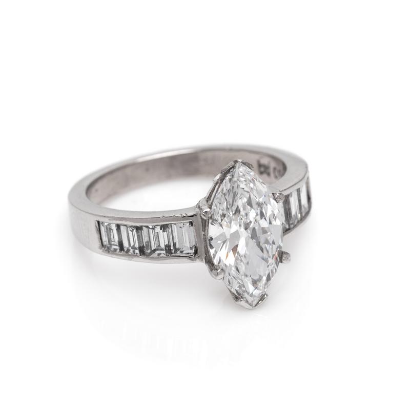 containing one marquise cut diamond weighing 2.03 carats and eight baguette cut diamonds.