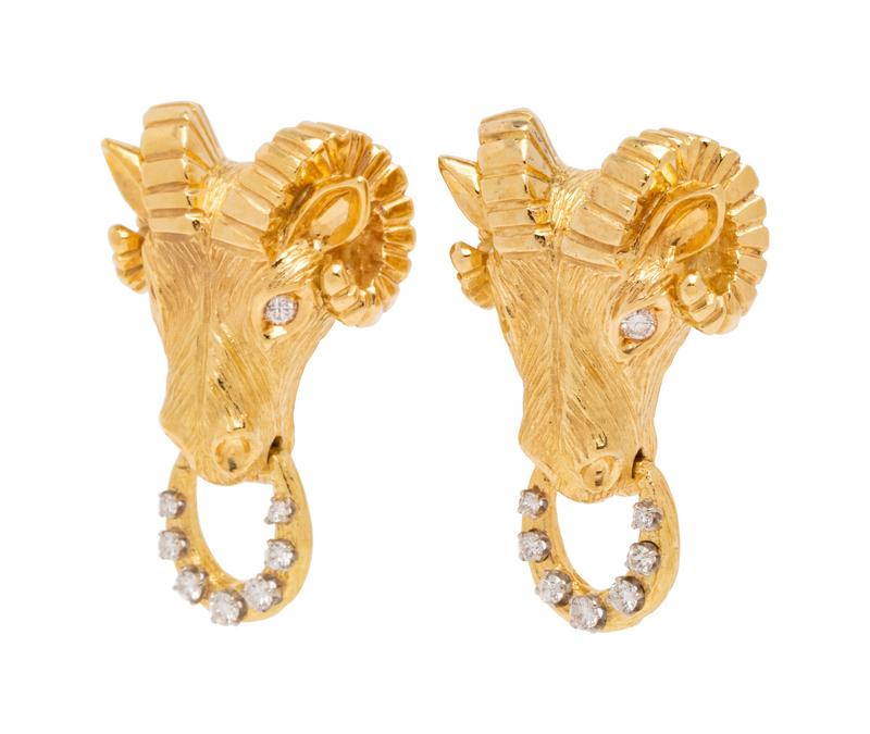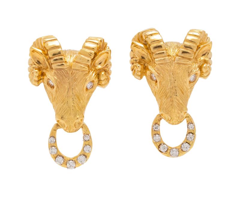 Van Cleef & Arpels, Diamond and Yellow Gold Ram's Head Earclips