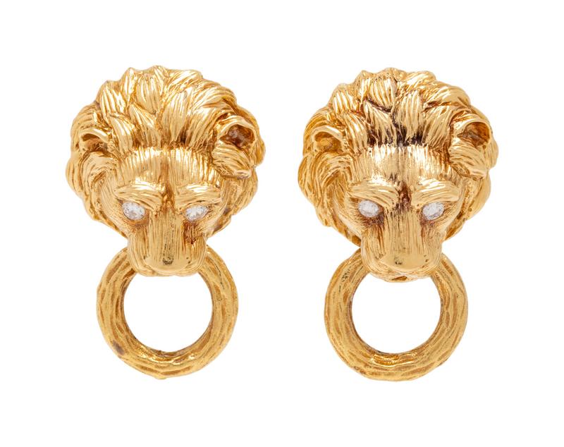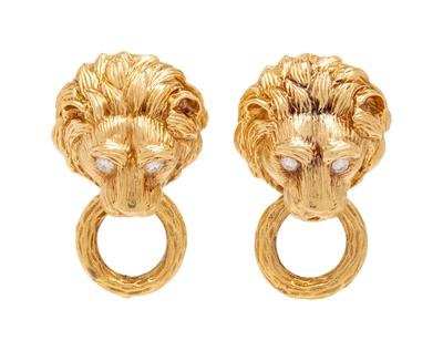 Van Cleef & Arpels, Diamond and Yellow Gold Lion Earclips