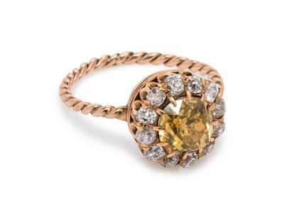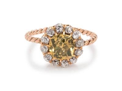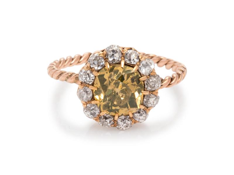 Victorian, Fancy Colored Diamond and Diamond Ring