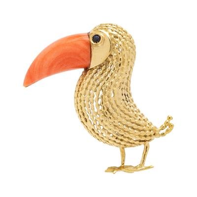 Coral and Sapphire Toucan Brooch