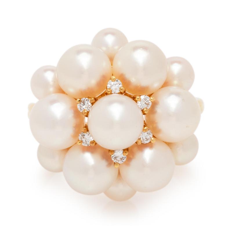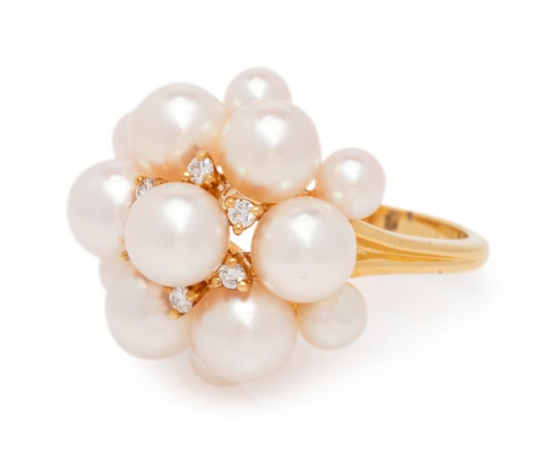 Cultured Pearl and Diamond Ring