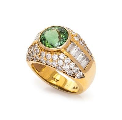Green Tourmaline and Diamond Ring