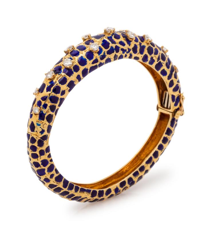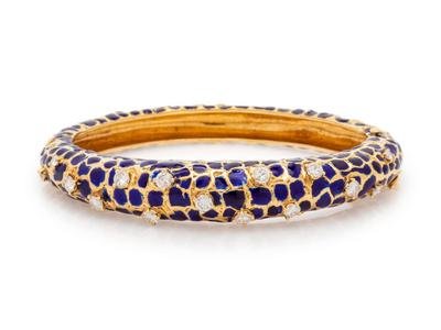 Gold, Enamel and Diamond Bangle Bracelet