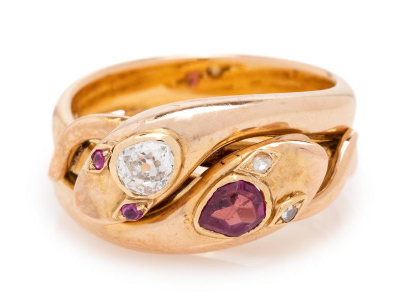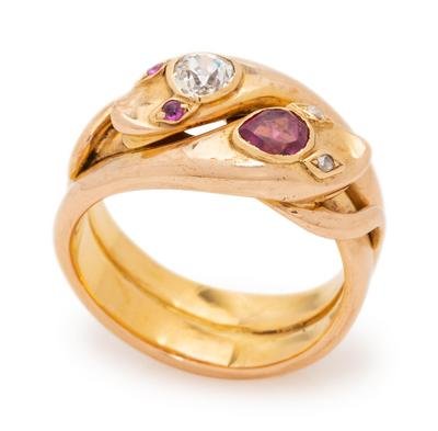 Victorian, Diamond and Ruby Snake Ring