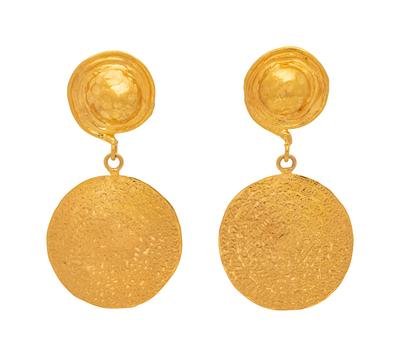 consisting of domed top sections and organic textured disk drops, posts with clip backs.