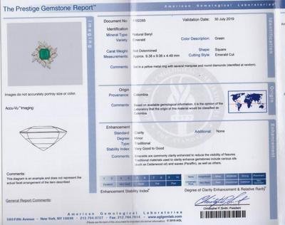 AGL, 2019, Report number 1102285, Natural Beryl, Colombia, Minor, Traditional
