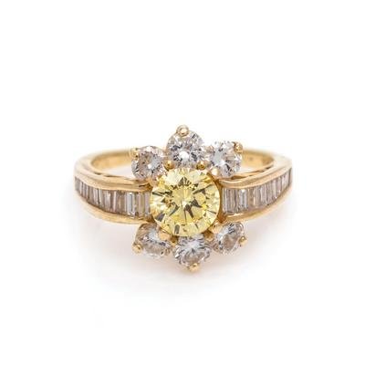 Fancy Intense Yellow Diamond and Diamond Ring