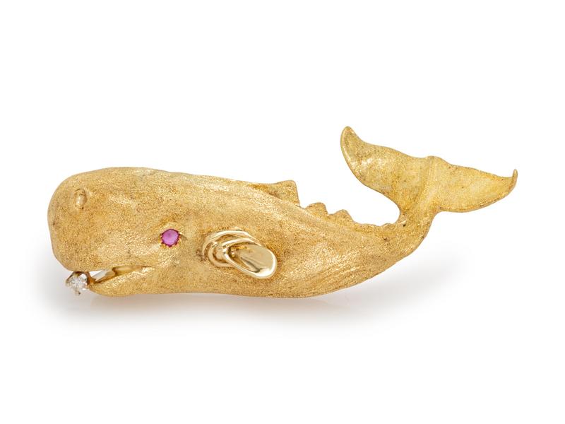 Diamond and Ruby Whale Brooch