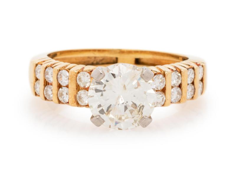 containing one round brilliant cut diamond weighing approximately 2.65 carats and 16 round brilliant cut diamonds weighing approximately 0.45 carat total.