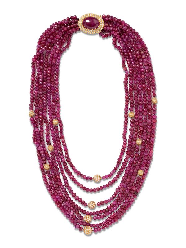 Van Cleef & Arpels, New York, Diamond and Ruby Bead Multistrand Necklace