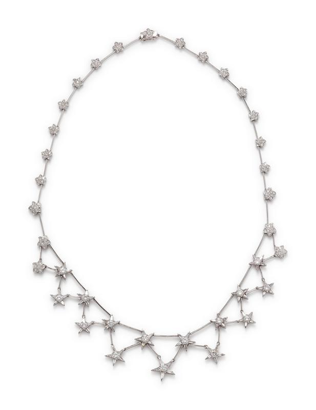 containing numerous round brilliant cut diamonds weighing approximately 3.45 carats total and 75 tapered baguette cut diamonds weighing approximately 1.60 carats total.
