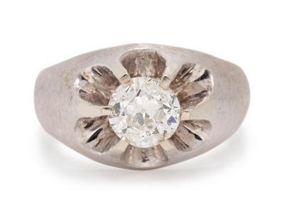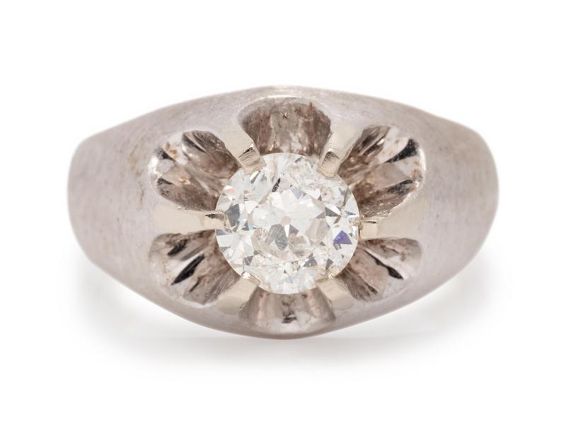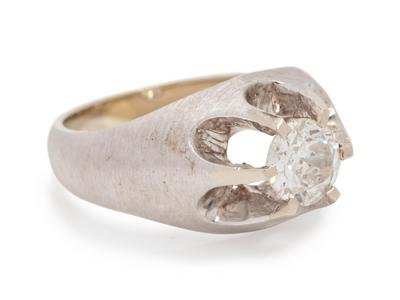 containing one old European cut diamond weighing approximately 0.95 carat in a gold six prong claw setting.
