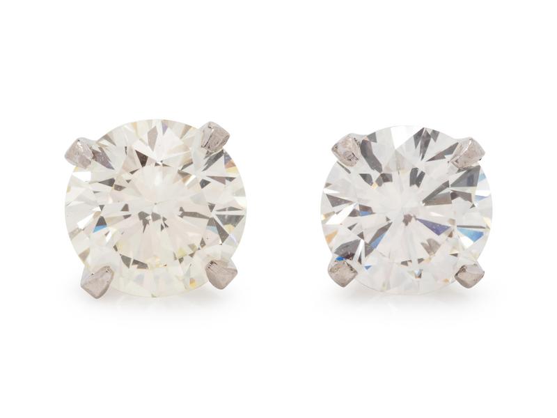 containing two round brilliant cut diamonds weighing approximately 2.20 carats total.