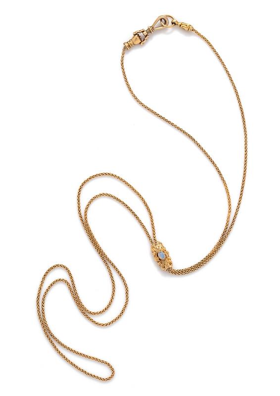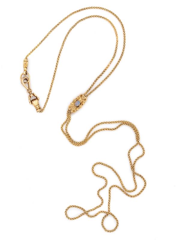 Victorian, Gold and Opal Longchain and Slide Necklace