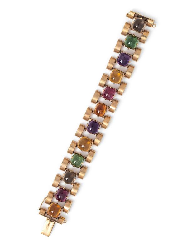 containing 12 cabochon gemstones including citrine, green tourmaline, pink tourmaline, amethyst and smoky quartz.