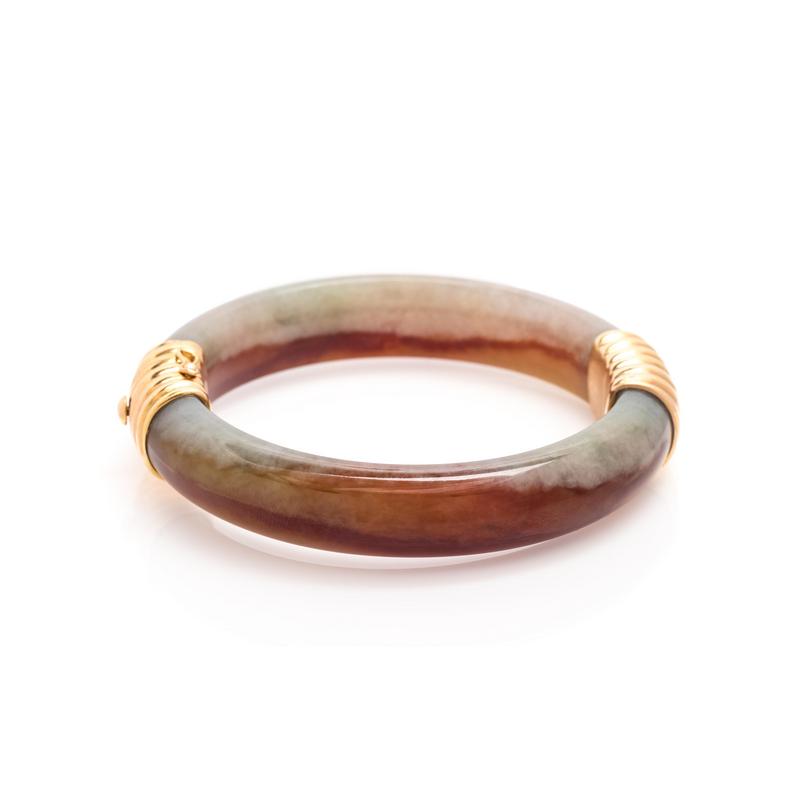 David Lin, Russet and Green Jade Bangle Bracelet