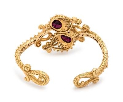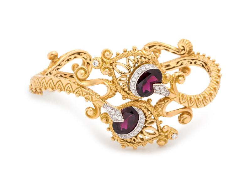 BARBARA BIXBY, GARNET AND DIAMOND CUFF BRACELET