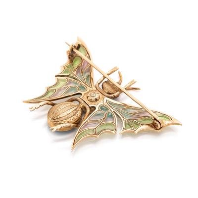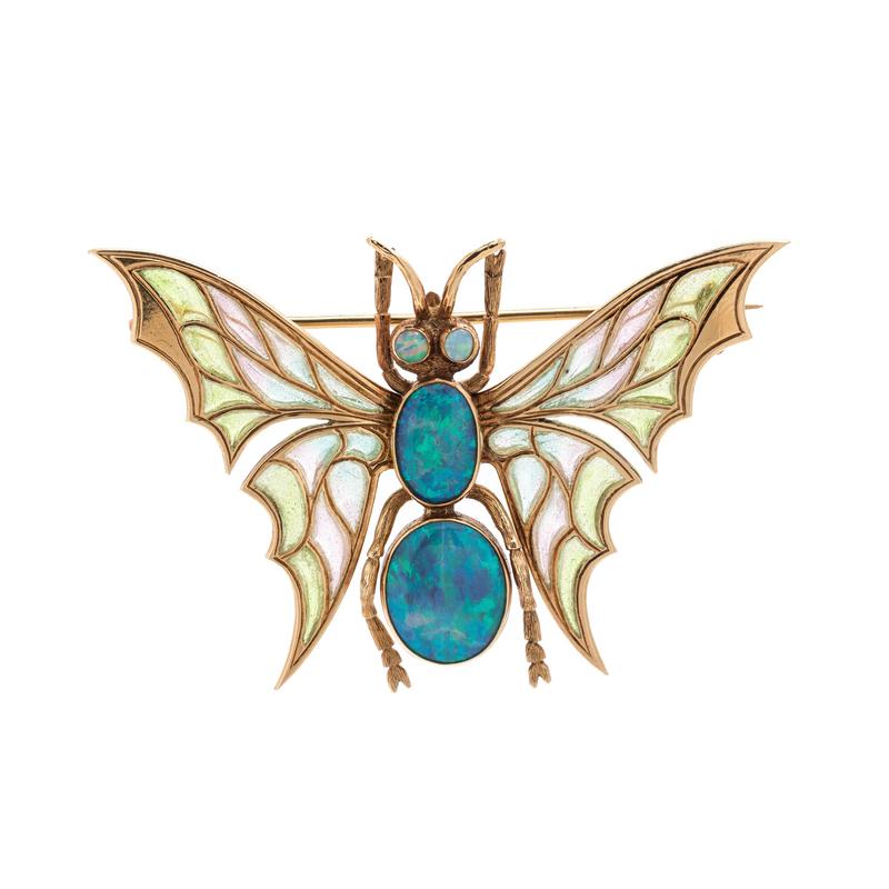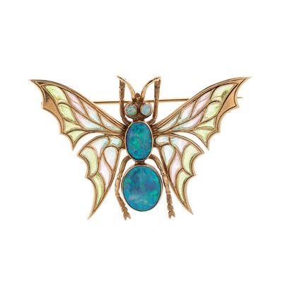 Opal and Plique-à-Jour Enamel Butterfly Brooch