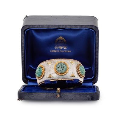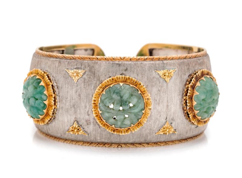 Mario Buccellati, Silver, Yellow Gold and Jade Bangle