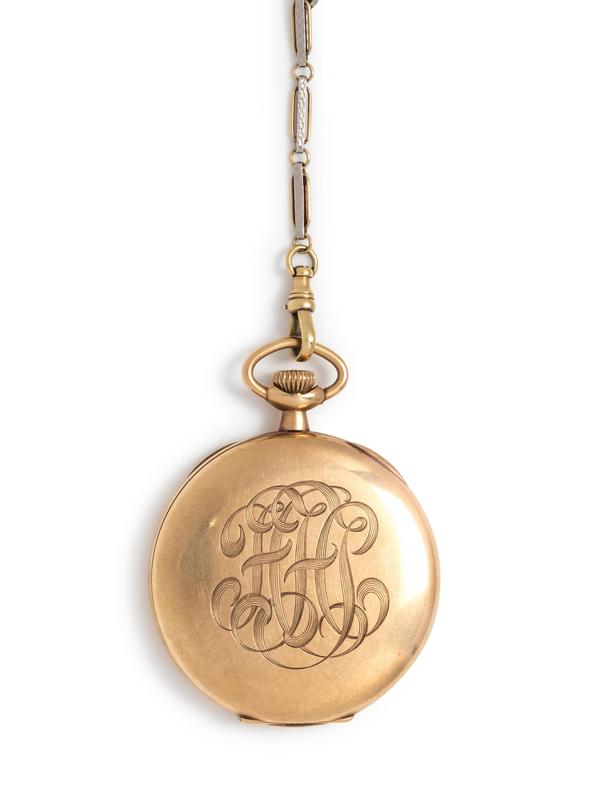 Howard, Yellow Gold Open Face Pocket Watch and Fob Chain