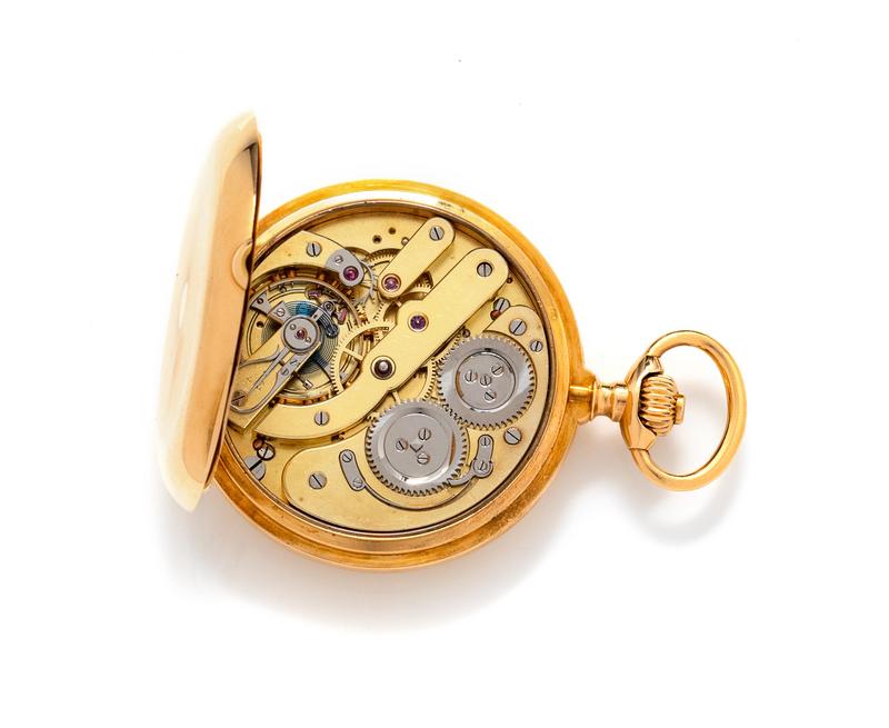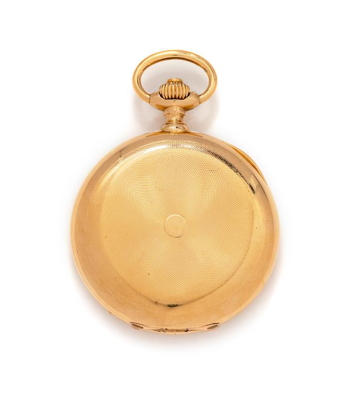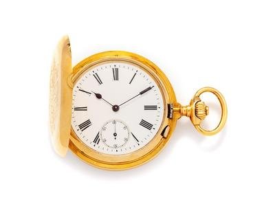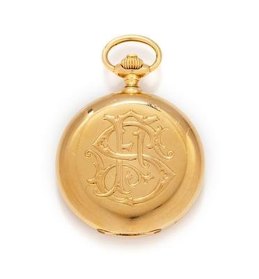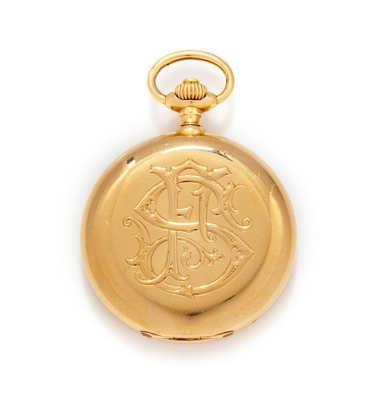 53.00 mm case diameter, white single-sunk dial, black Roman numerals, blued steel spade hands, subdial for seconds at 6 o'clock, polished bezel, monogrammed and engine turned case, polished cuvette, stem wound and lever set gilt movement.