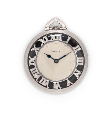 Tiffany & Co., Art Deco, Diamond and Onyx Open Face Pocket Watch