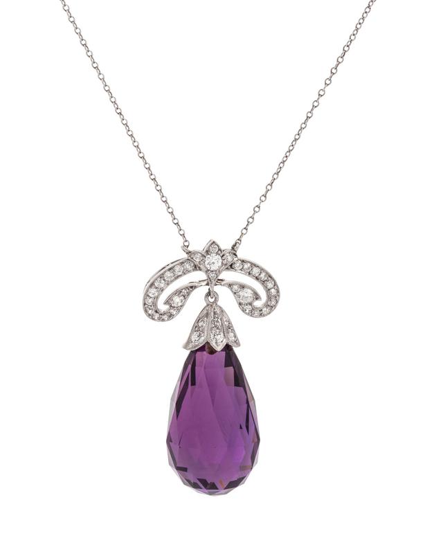Tiffany & Co., Art Deco, Amethyst and Diamond Lavalier Necklace