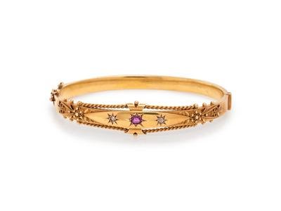 Etruscan Revival, Gold, Ruby and Diamond Bangle Bracelet