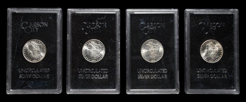 A Group of Four 1881-CC GSA: Morgan $1 Coins