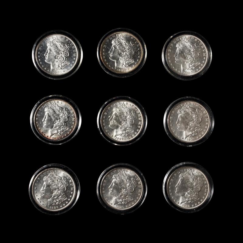 comprising 1880-S, 1881-S, 1882-S, 1888 (x2), 1889 (x2) and 1890 (x2) examples.