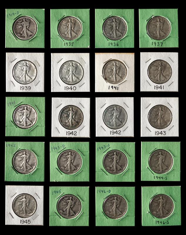 comprising: 1919-D, 1935, 1936, 1937 1939, 1940, 1941 (x3), 1942 (x2), 1943 (x2), 1943-D, 1943-S, 1944-S, 1945(x2), 1946-D and 1946-S examples.