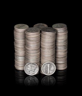 approximately 2,600 total, comprising Mercury and Roosevelt examples of various dates and mints.