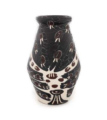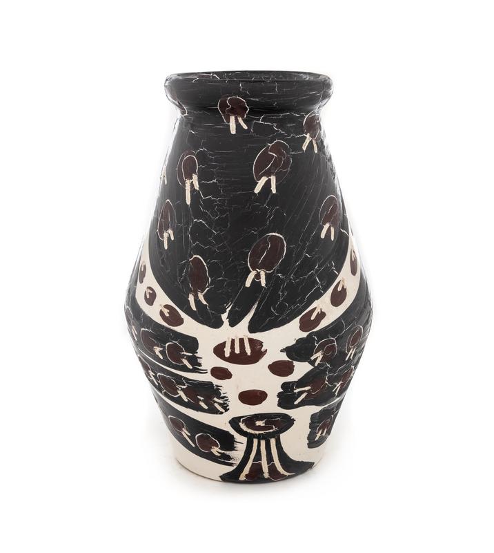 white earthenware clay decoration in oxides, with knife engraving on white enamel